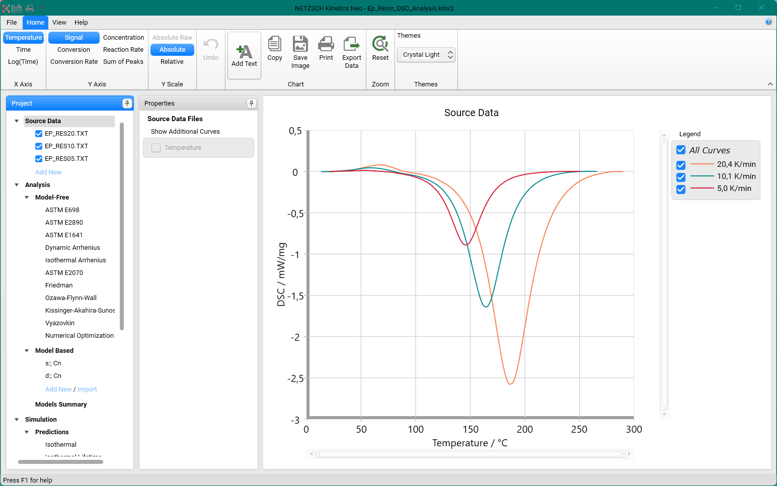 If number of points is higher than this value, like in DSC measurements, then source data are presented as the curves.